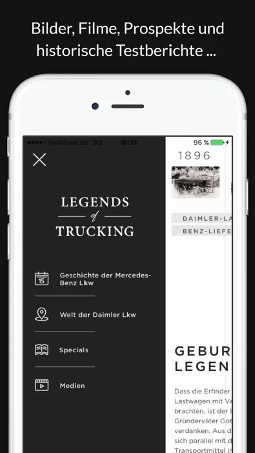Legends of Trucking beschreibt die Geschichte des Lastwagens anhand der Fahrzeuge, die unter den Markennamen Daimler, Benz und Mercedes-Benz entstanden sind. Mit der Erfindung des motorisierten Nutzfahrzeugs 1896 entwickelte sich über die Jahrzehnte das bis heute wichtigste Transportmittel für Waren und Güter – der moderne Lastwagen. Die Redaktion der Fachzeitschrift lastauto omnibus stellt die Fahrzeugtypen in einem Zeitstrahl vom Beginn bis heute vor. Dort finden sich Bilder, Filme, Prospekte und historische Testberichte sowie für VR-Brillen geeignete 360°-Videos und 360°-Fotos.