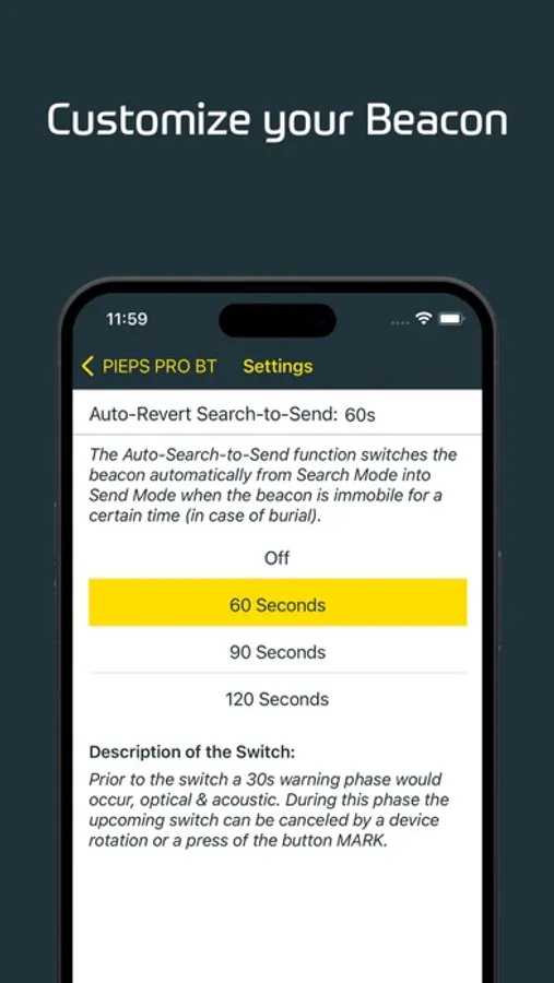- Configure your PIEPS or Black Diamond device according to your preferences.