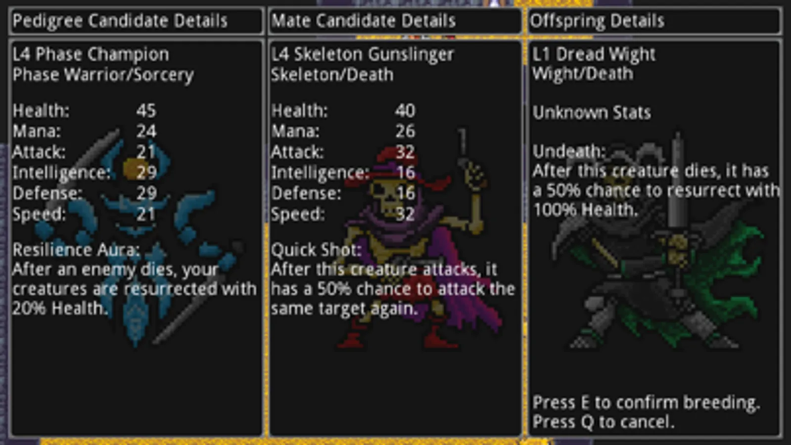 - Breed your creatures to make them lay eggs. The offspring inherits attributes from its parents!
