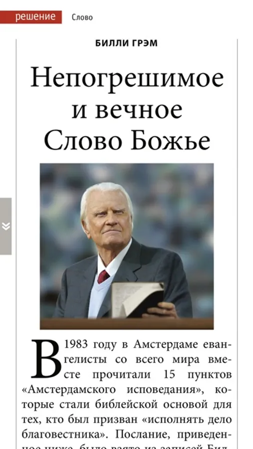 Журнал “Решение вместе с Decision" впервые увидел свет в конце 2002 года. Благодаря сотрудничеству с изданием Decision, наш журнал получил достойную полиграфическую базу. Постепенно был собран авторский коллектив. Среди наших авторов писатель, поэт и журналист Андрей Суздальцев, гебраисты Мария Каинова и Алексей Токарев, пасторы Михаил Дубровский, Алексей Ласточкин, новозаветники Ирина Апатова, Сергей Корякин, психологи Алексей Горбачев и Петр Коломейцев, библеист Андрей Десницкий, философ Михаил Черенков, благовестник Евгений Душаков, искусствовед Ирина Языкова и много других талантливых людей, замечательных профессионалов.