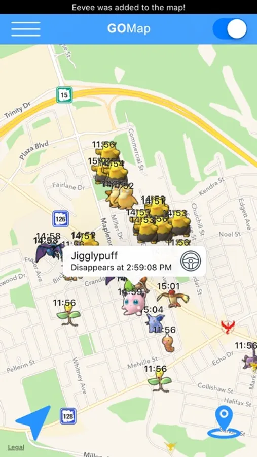 Turn on the Switch on the top right so the app can alert you when a new Pokémon is making its appearance on the map.