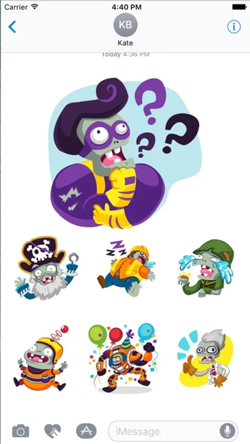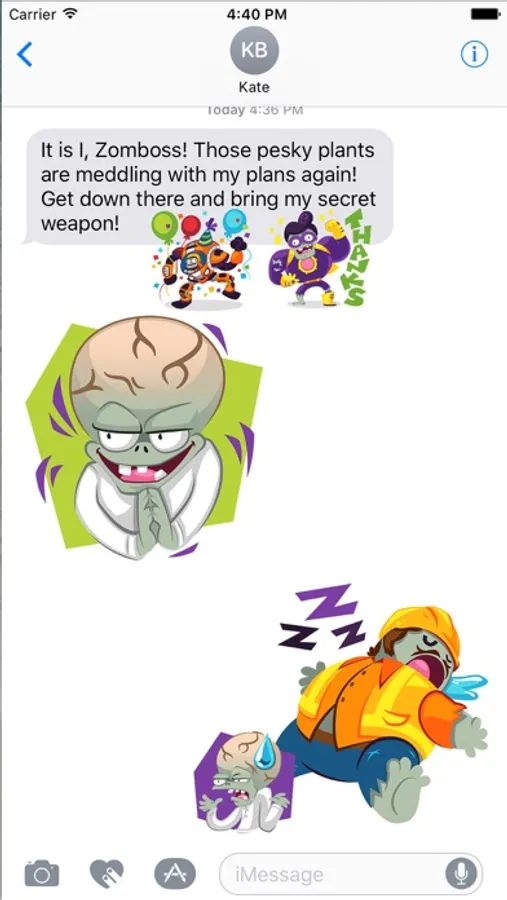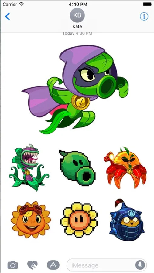 Using the PvZ Sticker Pack in iMessage is easy enough to make you smile like Sunflower. Just bring up the sticker keyboard when sending or replying to a message to scroll through the choices. Pick whatever best reflects your meaning or mood, and with one click, insert it directly into your message. Or, drag and stick a plant or zombie anywhere – on top of words, on top of other stickers, wherever you want. With over 110 choices, including holiday-themed ideas (a zombie for Valentine’s Day is sure to make hearts flutter), cool character and copy combos, and cute and creative animations, you’ll find PvZ stickers to use with everyone you know.