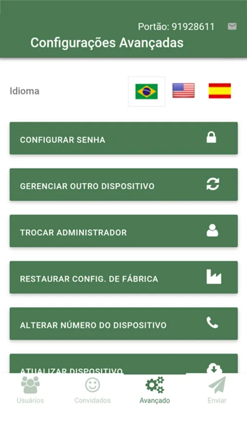 * Configuração de lista de convidados para acesso ao dispositivo;