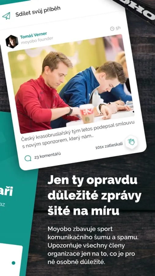 Moyobo je první a jediná aplikace, která byla navržena ve spolupráci s elitními atlety přímo pro svět sportovců - nabízí jednoduchou, rychlou a bezpečnou komunikaci mezi sportovními organizacemi a jejich členy, sdílení důležitých informací, dokumentů i osobních příběhů, které inspirují a spojují sportovní komunitu napříč všemi disciplínami.
