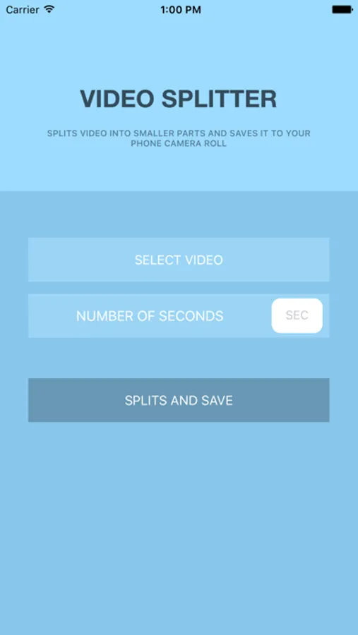 SPLITS VIDEO INTO SMALLER PARTS AND SAVES IT TO YOUR PHONE CAMERA ROLL