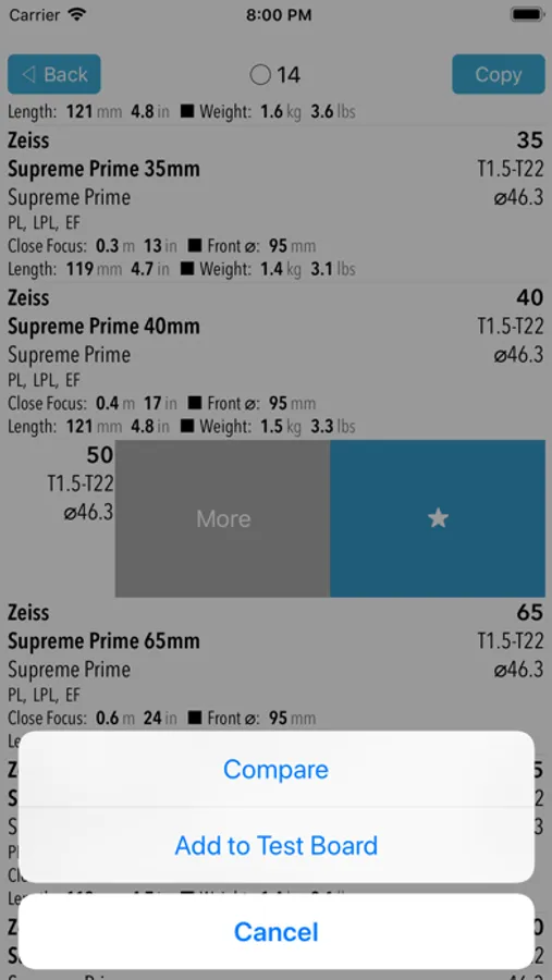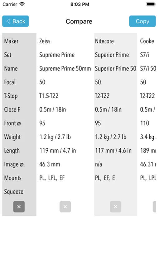 - Compare: compare as many lenses as you need with a few swipes and taps