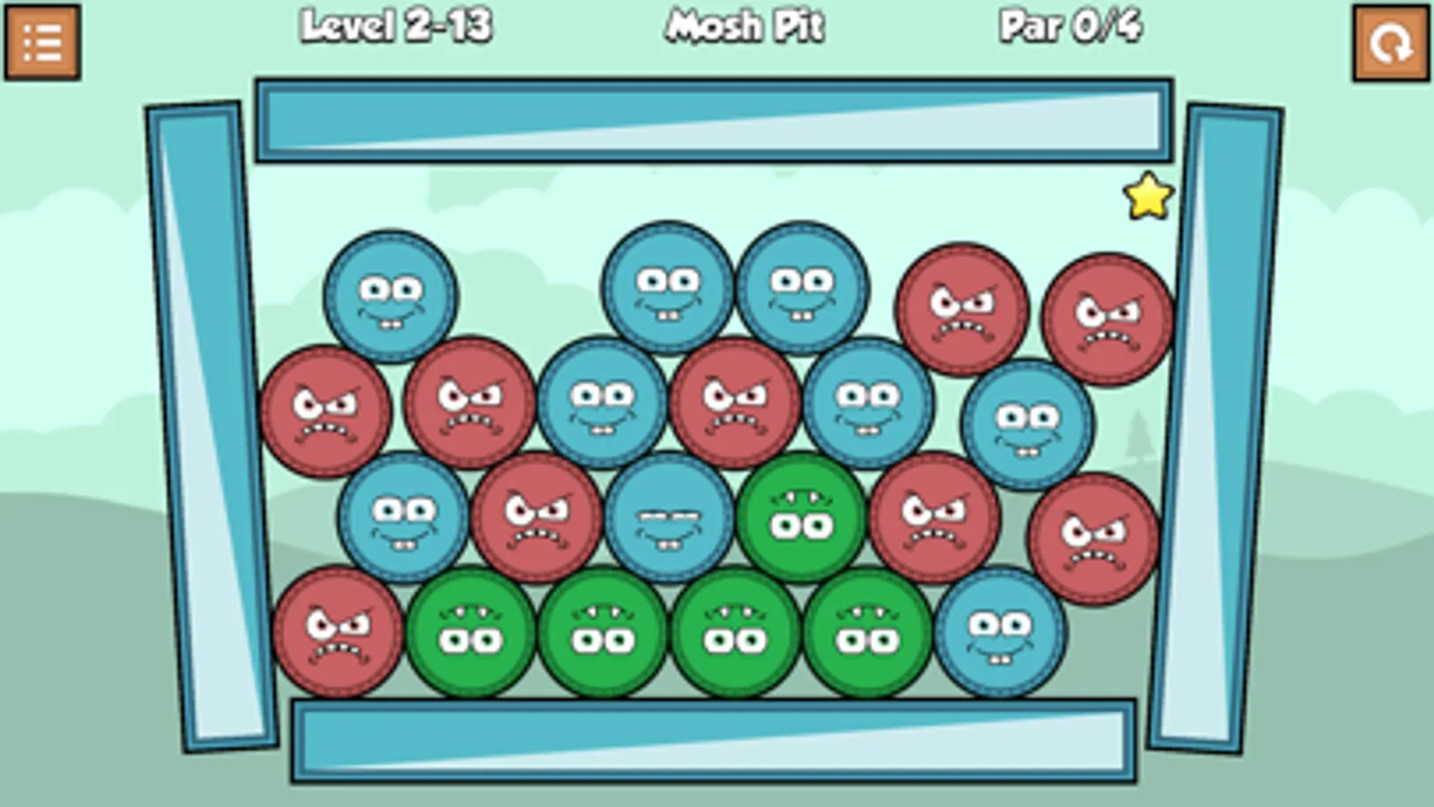 Your goal is to remove all Red and Orange shapes from the screen, while ensuring that the Green shapes remain on screen. Follow along with the in-game tutorial to learn the simple rules.