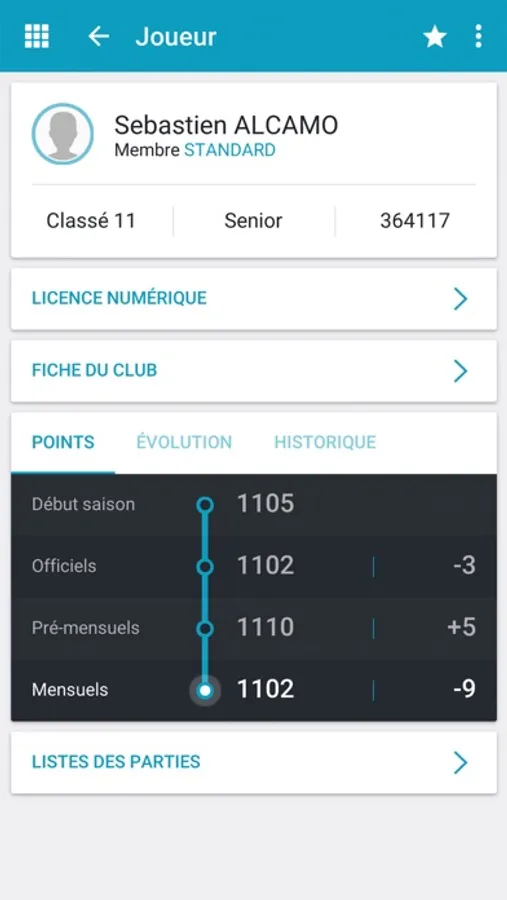 - Consulter ses statistiques (Licenciés, Répartition des classements, ...)
