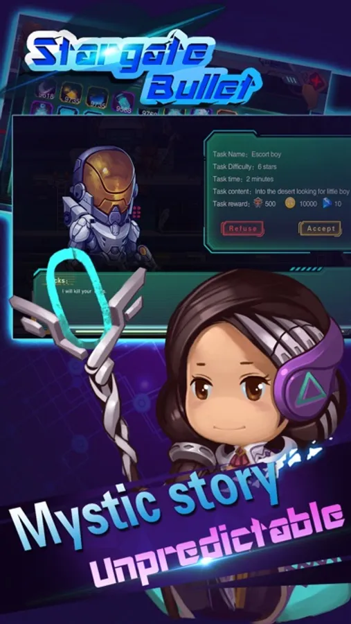 This stand-alone game Stargate Bullet is a level game combined with shooting and adventure in horizontal version. This game contains nearly 200 levels of common challenges with different degrees of difficulty and styles, and it will also randomly touch off the copy of challenges according to different conditions. In this game, the player will play the role of one guard of the earth empire, and through his (or her) own efforts, he (or she) can summon dozens of heroes fighting for the earth. During the challenge task, the players can collect a variety of training materials to strengthen their heroes in different ways, and then get ready to beat the knotty BOSS.