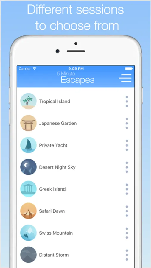 5 Minute escapes provides a beautiful escape from the grind of daily life. Just select your escape meditation press play and let the audio take you to a world of relaxation and calm.