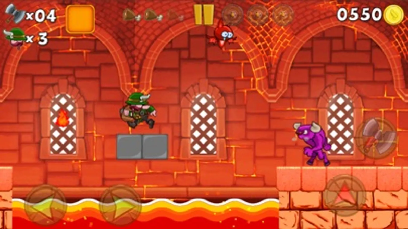 Jump, fight, throw axes and use every kind of power-ups to beat the monsters!