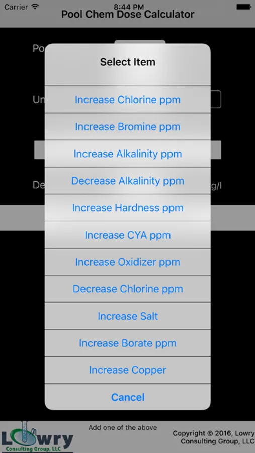 No brand names, no sales just the exact dose of the chemical you want to use by chemical name. Use it while you are at a pool or in the field to find out how much chemical to add to make a correction or increase or decrease a condition.