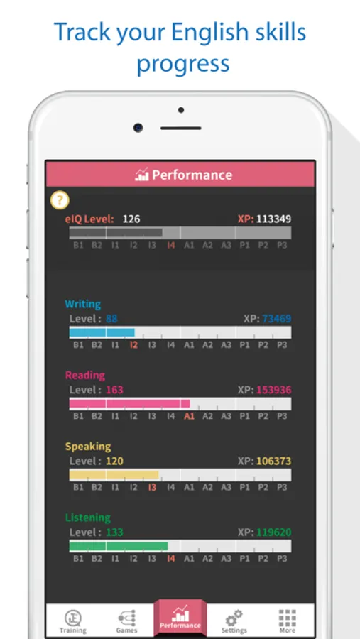 Track your progress and discover in which skill you do well and in which you need more practice.