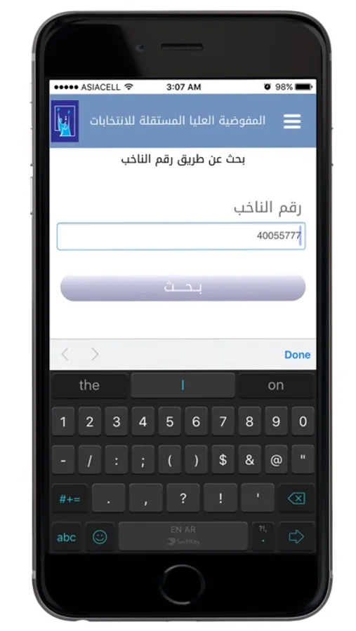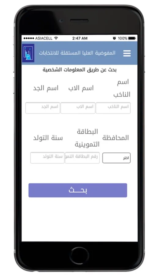 تم تصميم التطبيق من قبل قسم سجل الناخبين وقسم ادارة البيانات