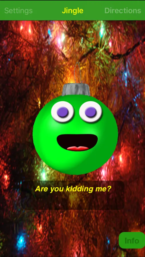 Enhance your holiday fun with the Jingle, a cute little talking Christmas Ball that can answer questions and has a cute personality. Just ask Jingle your question, press the 'Ask Me' button and Jingle speaks a randomly generated answer. Touch Jingle's face and eyes to see what he says.