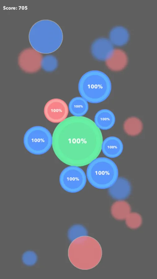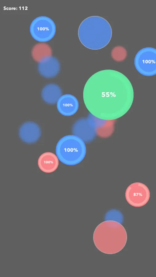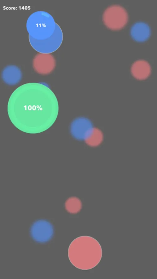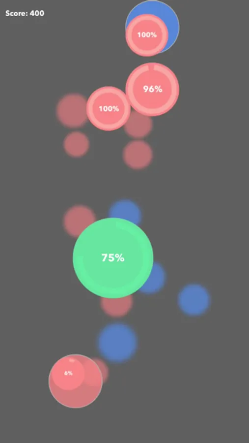 Reducing a circle's health to 0% will increase player health and advance your score!