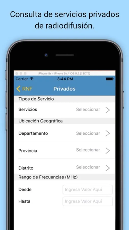 La app RNF-MTC te provee toda la información sobre las frecuencias registradas tanto en los servicios de radiodifusión y servicios privados.
