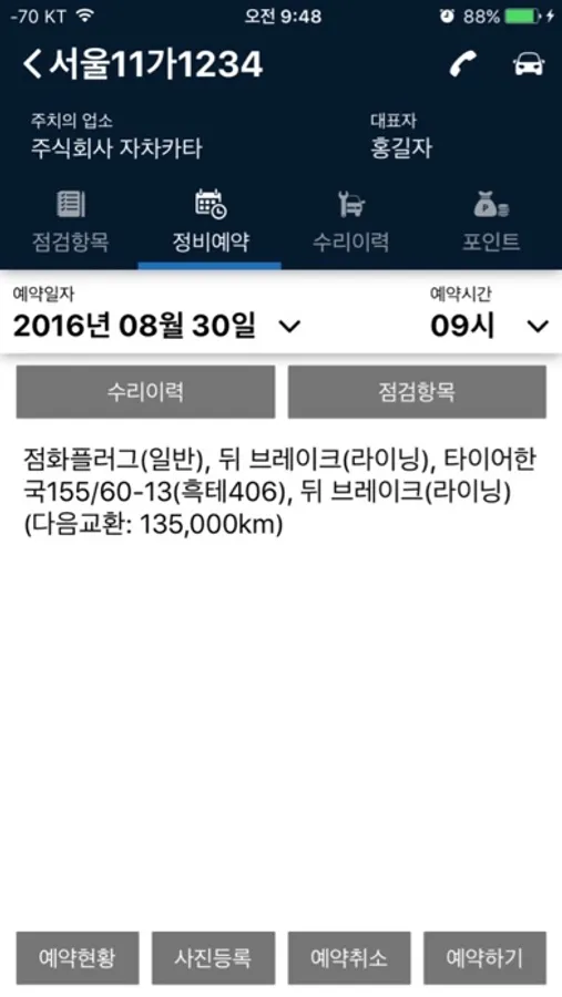 - 주정비업소에 예약시간, 일자 등을 간편하게 예약하시면 주정비업소에서
