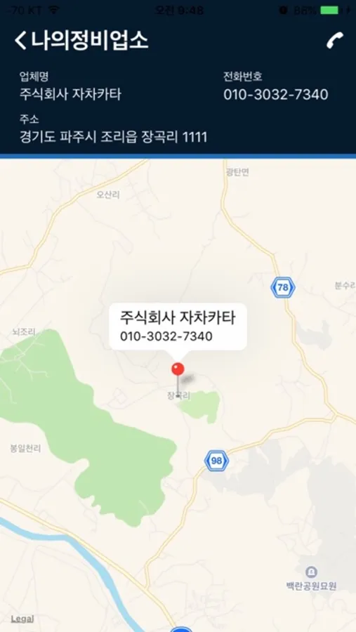 - 주정비업소(주치의업소)의 위치를 확인하실 수 있습니다.