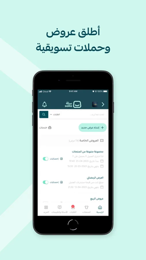 يمكنّك تطبيق سلة من إنجاز المهام المختلفة في متجرك بخطوات بسيطة، كإضافة منتجاتك وخدماتك ومتابعة وتحديث حالات الطلب والتفاعل مع عملائك مباشرة وغيرها من الخصائص التي تحتاجها لإدارة متجرك.