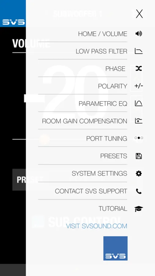 When used with your SVS subwoofer, the app takes the mystery out of subwoofer digital signal processing (DSP) by clearly explaining each feature and providing easy control from your mobile device. If you’re new to subwoofer DSP, the SVS app has a helpful tutorial that guides you through the different settings.