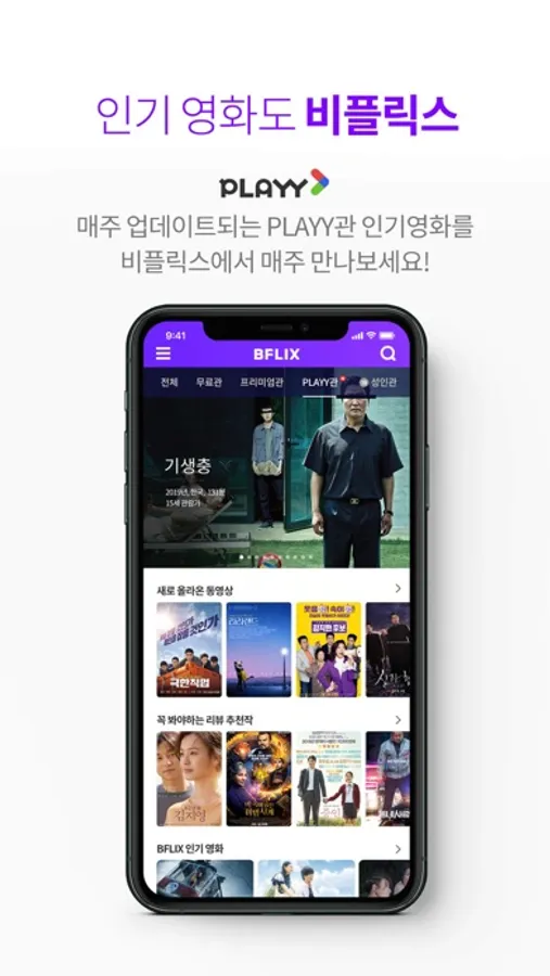 • 인기 명작 영화들이 주기적으로 업데이트되는 PLAYY관이 추가되었습니다.