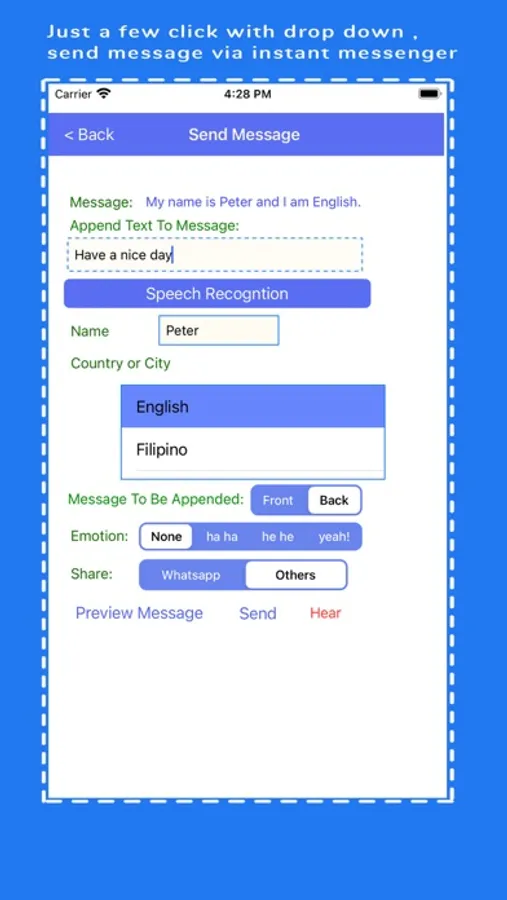EnglishSharingApps has provided a feature for user who can send messages in English to your friend share via instant messenger.