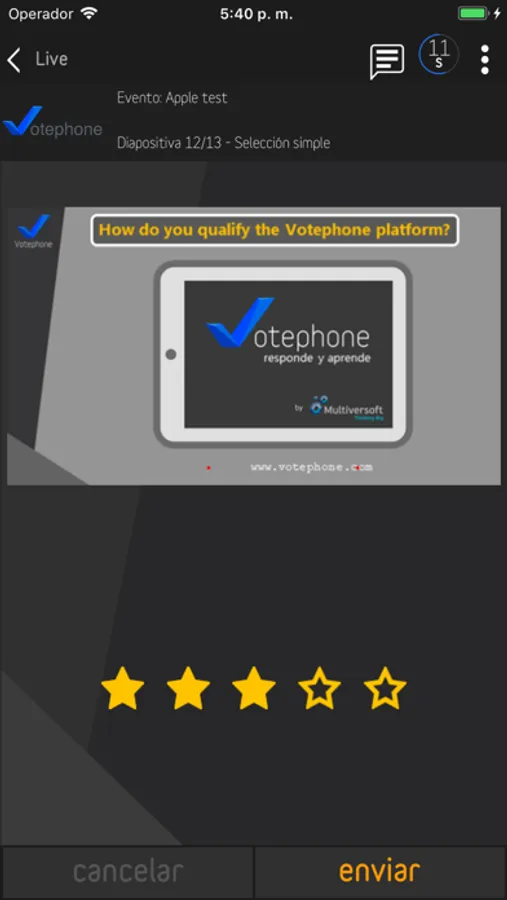 La App Votephone te permite afianzar, mejorar y valorar los contenidos de las presentaciones interactivas en que participas, mediante respuestas, opiniones y votos.