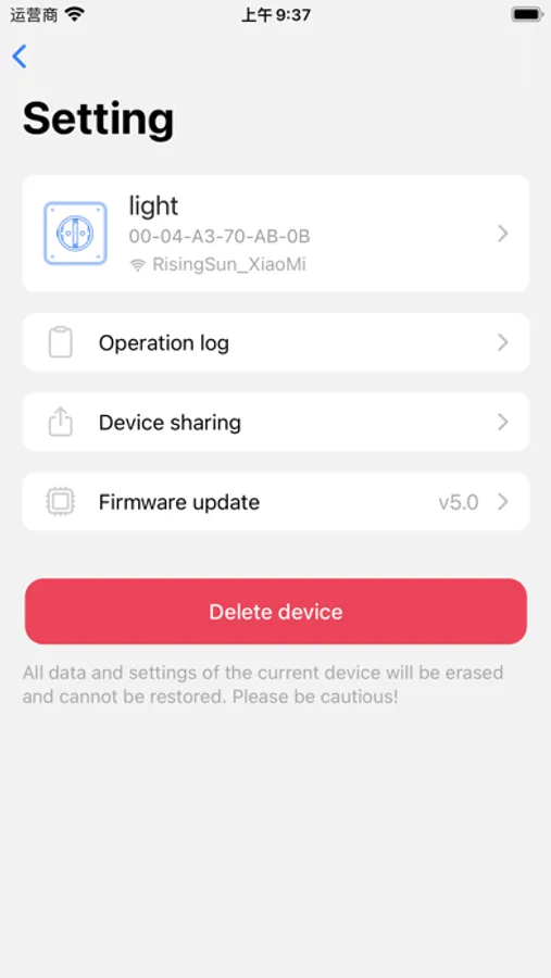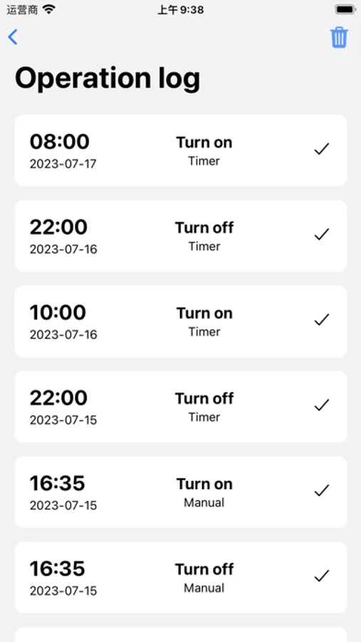 - Operation log query: From the time of adding the device, any operation will be recorded in the operation log until the device operation log is manually cleared.