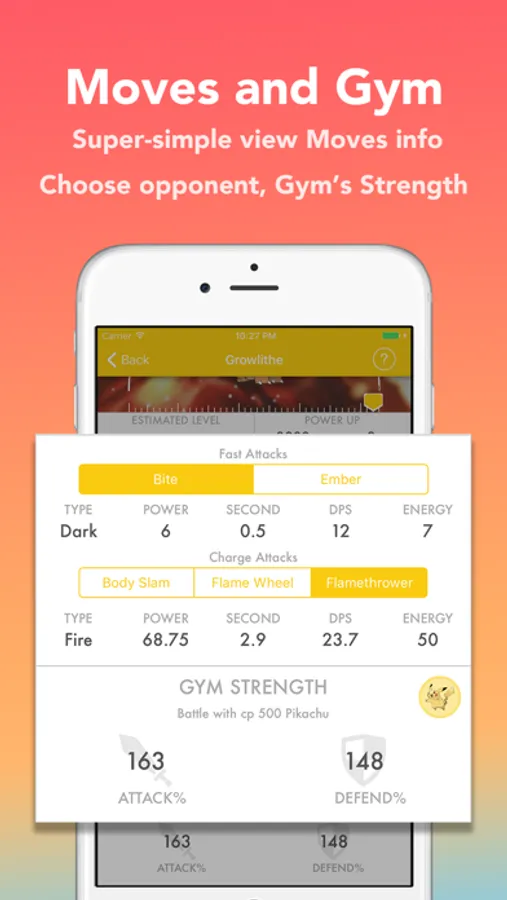 - Mix of skills: Super-simple view detailed information Pokémon skills DPS, Type and so on.