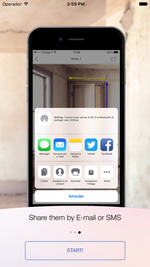 Measures are saved and can even be sent by SMS, e-mail, on Facebook ...