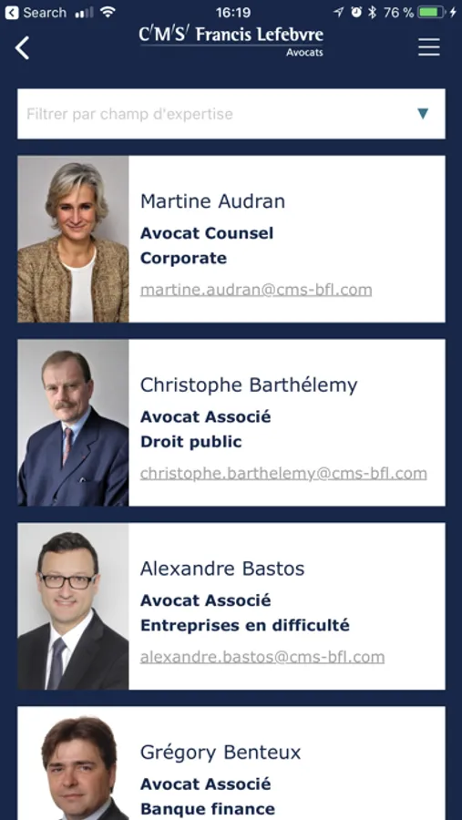 Nos équipes d’avocats dont les coordonnées sont renseignées sur l’application, sont à votre écoute pour toute question.