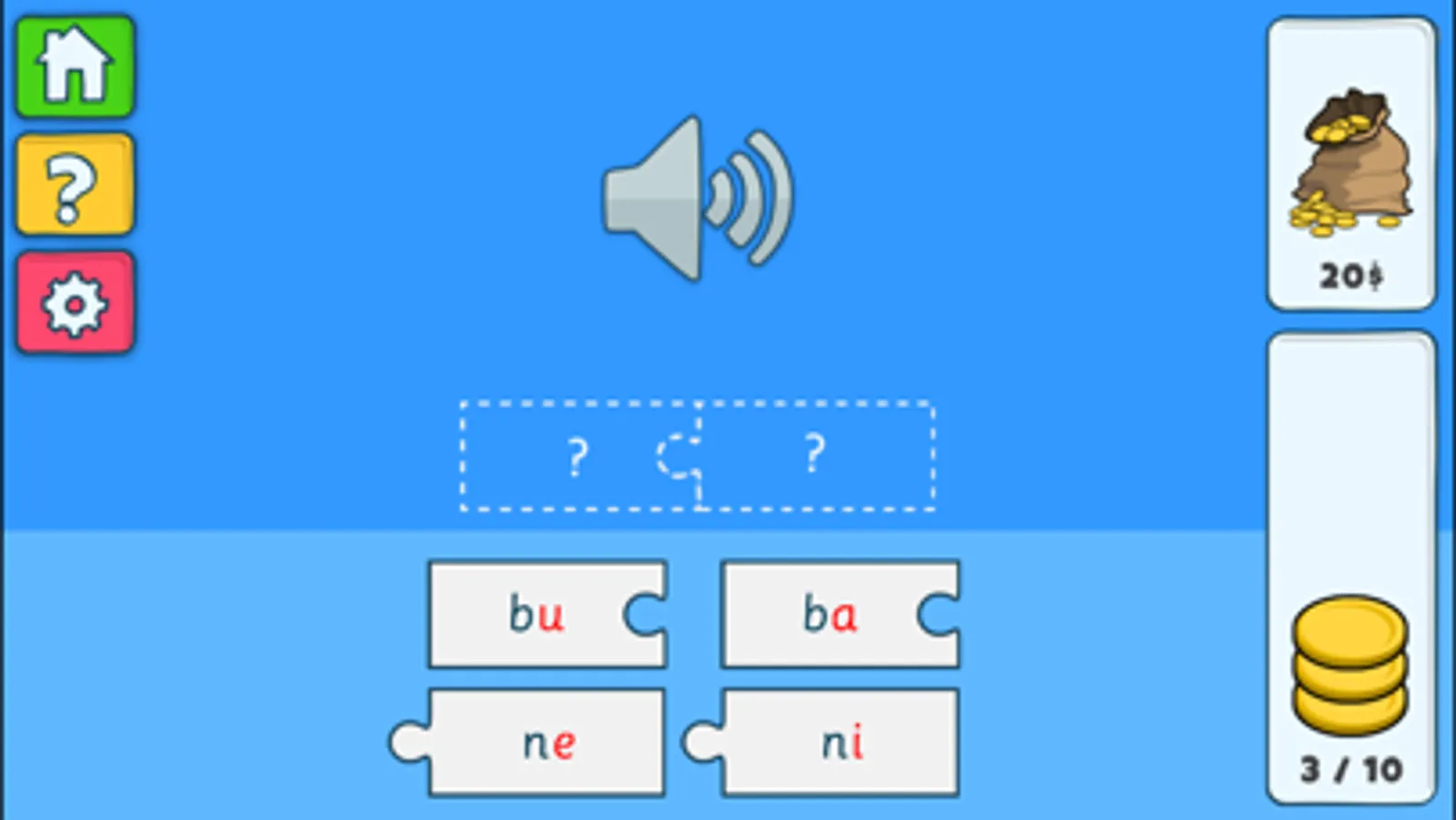 Pusle småord er en veldig god app for å øve på å sette sammen stavelser til små ord. Morsomme figurer og animasjoner gjør appen underholdende for små barn som holder på å knekke lesekoden.