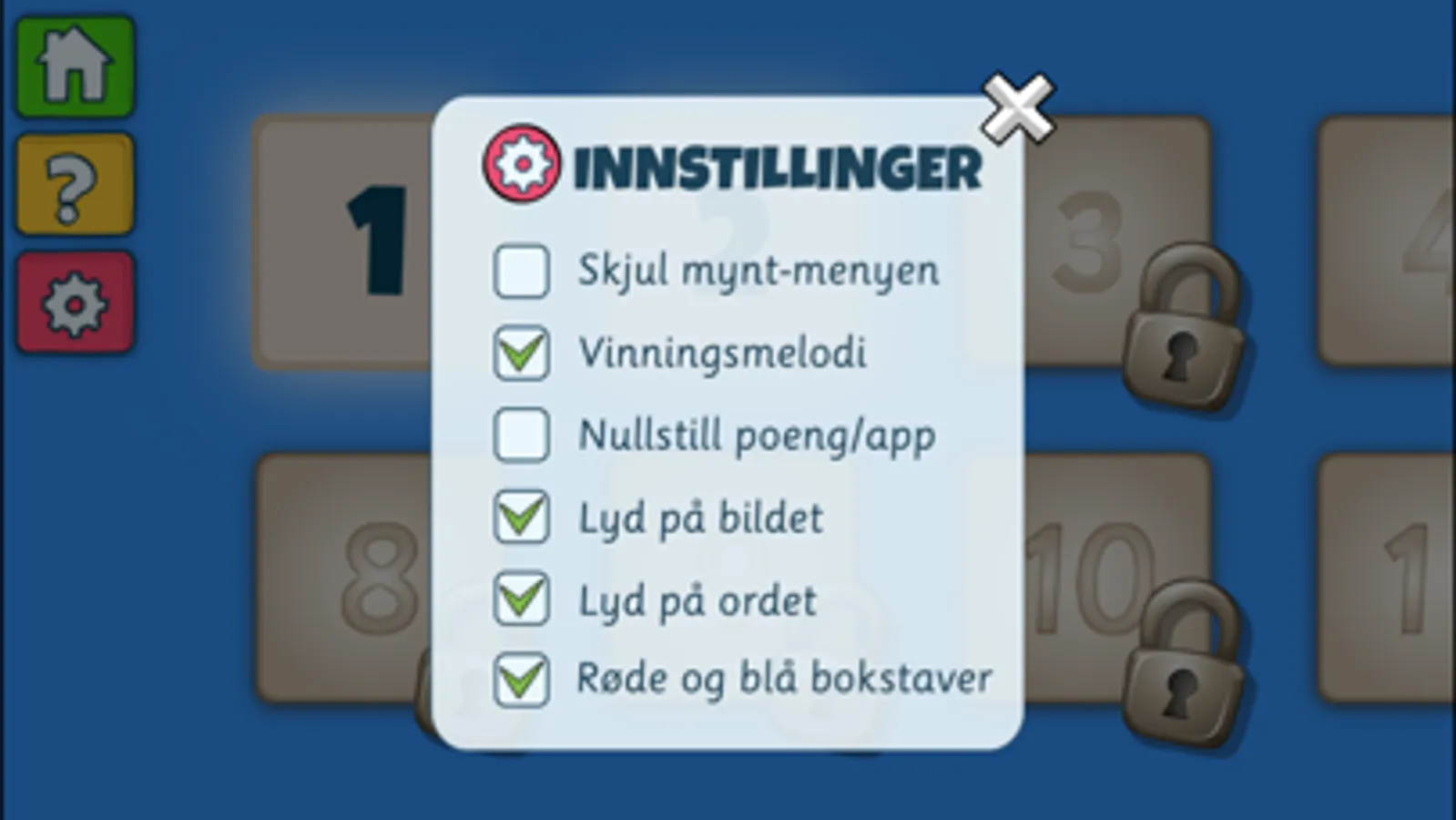 Både småordene og bildene har lyd, slik at barnet kan høre hvordan lyder blir til ord. Man kan også velge om man vil at vokaler og konsonanter skal ha forskjellige farger.