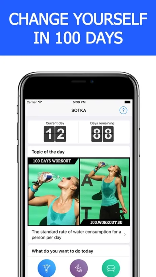 SOTKA program is designed for 100 days, during which you will everyday get new useful information and perform training complexes consisted of basic bodyweight exercises.