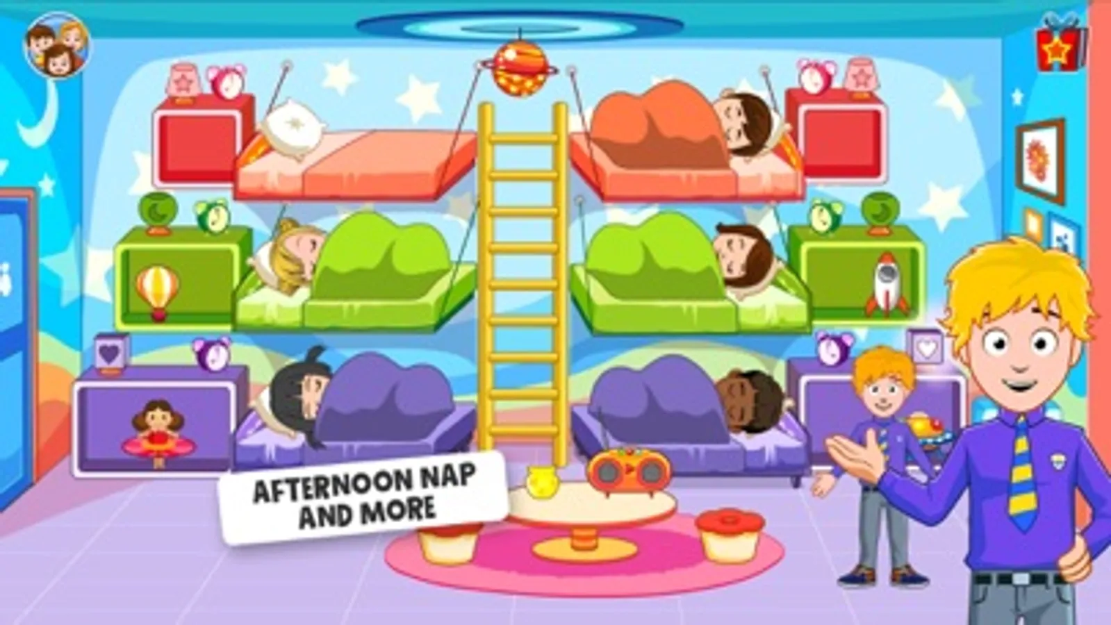 Grab your backpack, it’s time for My Town : Preschool! Build and play in your very own preschool. There are hours of fun ahead for telling stories about what life at school is like. My Town : Preschool has 8 unique locations to explore. You can dress up the children before they get to school, take care of them when they get hurt on the playground and need a bandage and make lunch during breaks!