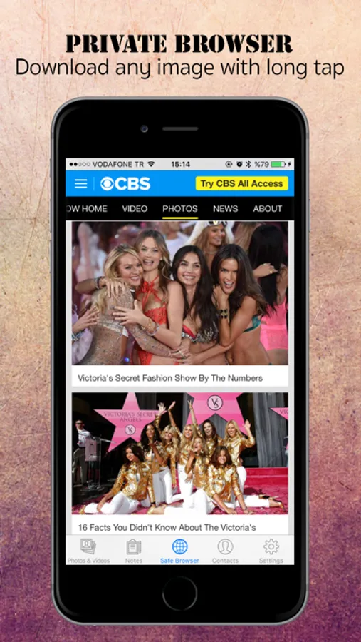 - You can download any image with the help of private browser just with a long tap into your Secure Vault Albums.