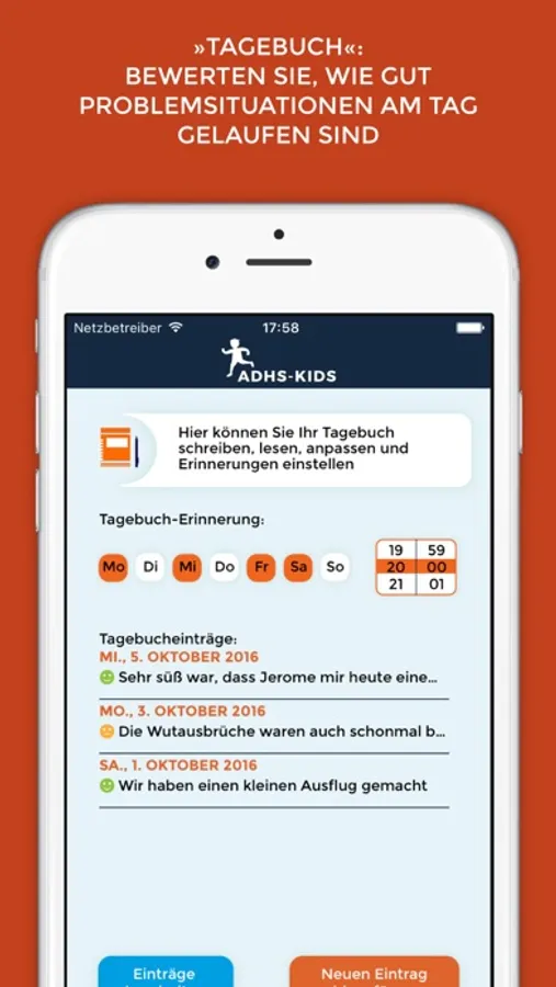 Im Bereich »Tagebuch« können Sie festhalten, wie gut problematische Situationen an einem Tag gelaufen sind. So können Sie Erfolge verfolgen.