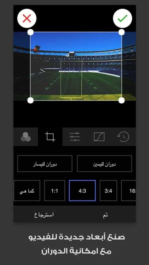 ٢ - امكانية التحكم بأبعاد الفيديو وقص الفيديو وصنع ابعاد جديدة ليظهر بها الفيديو