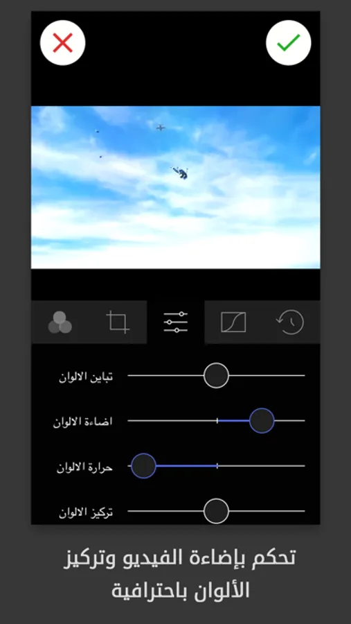 ٣ - التحكم الكامل بإضاءة الفيديو وتركيز الالوان
