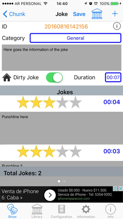 - Carry on your cellphone all your list of jokes and create any joke at any moment you get inspired.