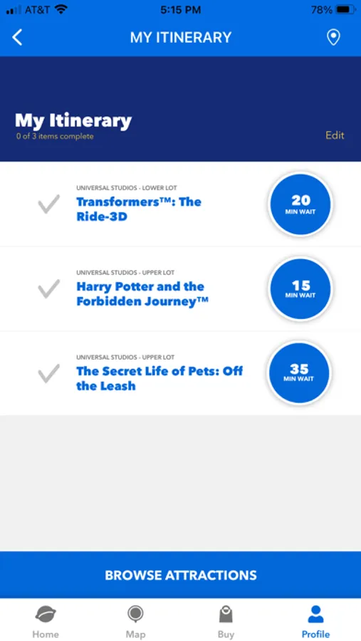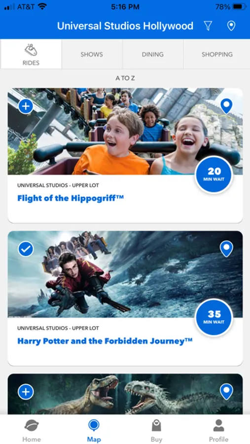• Customize your park experience using the itinerary, filtered lists and the map to plan your day