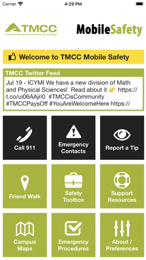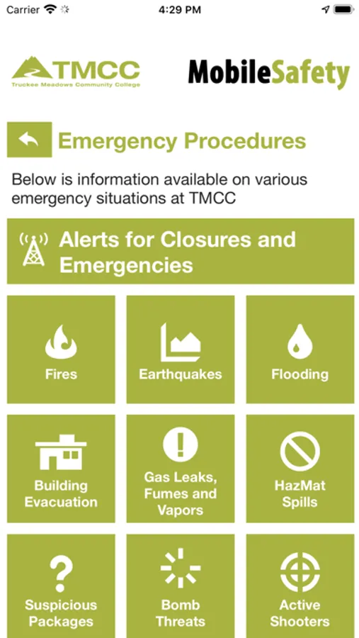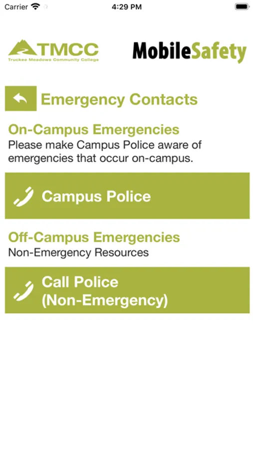 - Safety Notifications: Receive instant notifications and instructions from TMCC Campus Police when on-campus emergencies occur.