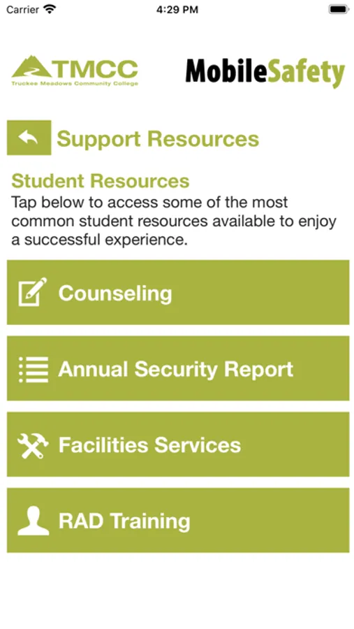 - Support Resources: Access support resources in one convenient app to enjoy a successful experience at TMCC.
