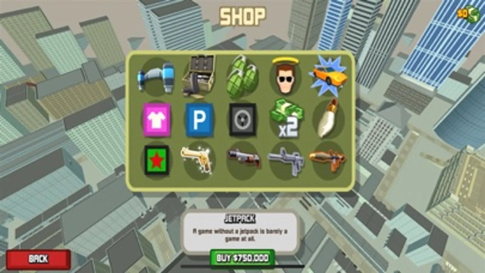 * A shop with awesome ingame features like GodMode, Golden Gun and a Jetpack!!