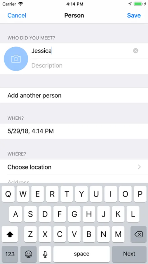 Keep names of persons you meet - super fast and simple. You are never ever going to ask: "Sorry, what was your name again?"