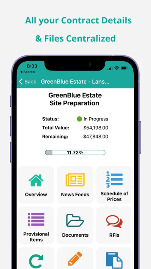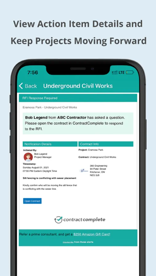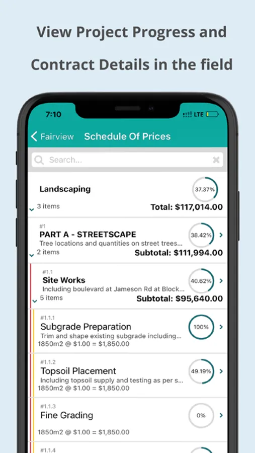 The ContractComplete App is designed to supplement an existing web based application for use by landscape architects, civil engineers and project managers; as well as their contractors.