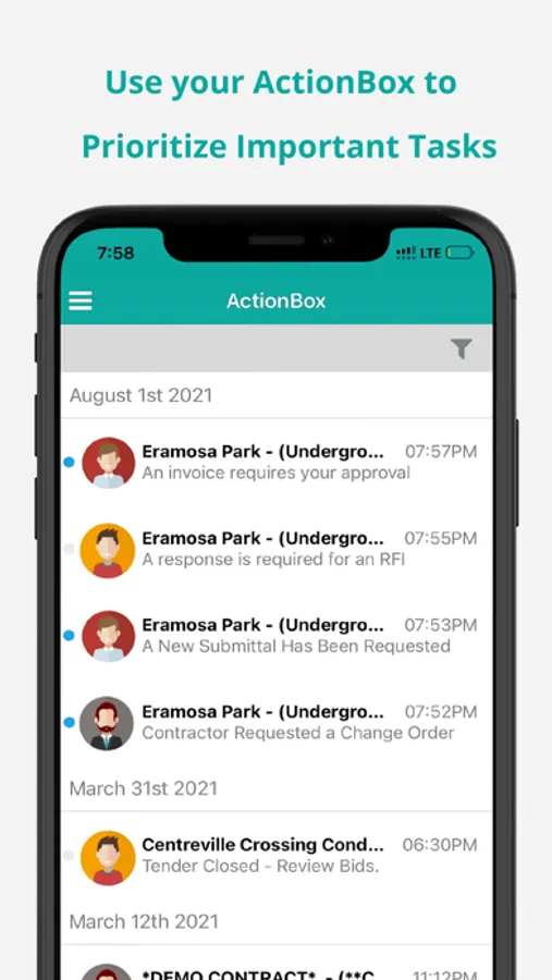 You can view all your contracts, bids and tenders as well as their relevant information and documents. View your ActionBox and stay current with project requirements.