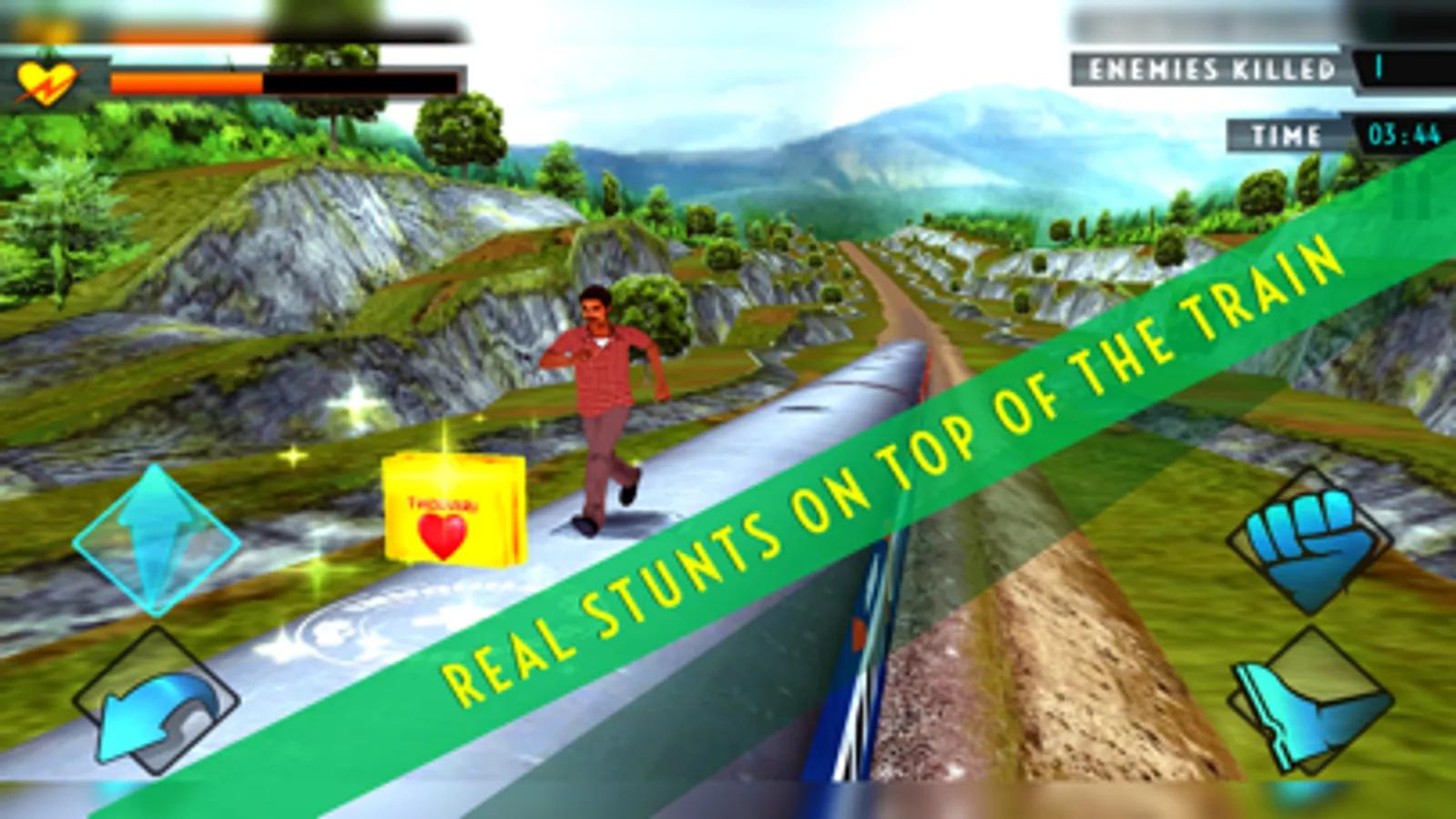 Duronto Express a train from Delhi to Chennai started on time witch all passengers including A Cafeteria worker Dhanush and Young beautiful girl Keerthi! Suddenly the train is hijacked with the unknown gang of deadly hijackers, you must play as Dhanush and fight with all hijackers and finish them to save your Keerthi along with all passengers in the train. You are on top of the train and hijackers attacking you from both the end and you start kick them away from train, you can punch, kick and do other several stunts available in the game. There are 2 modes of the game, one is time trail with 10 levels and each level has a set of enemies target with limited time and hence you have to finish them within mentioned time in order to move on to the next level. You can restore your health by picking up health packs. Once you finish all 10 levels then “Endless Mode” will be unlocked where you can fight in endless mode and score will be depends on how much time you survive to fight and how many enemies you kill! Be a top scorer and start play official Dhanush’s Thodari Game!