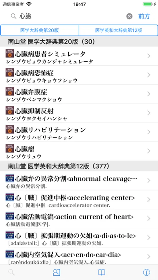 ・日本語の医学用語だけでなく、欧文用語でも検索することができます。